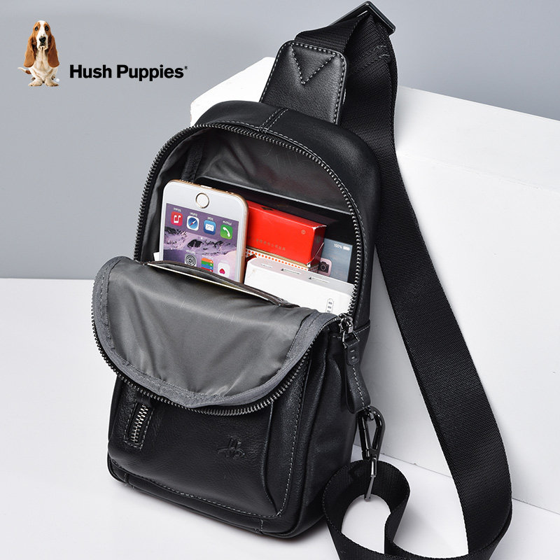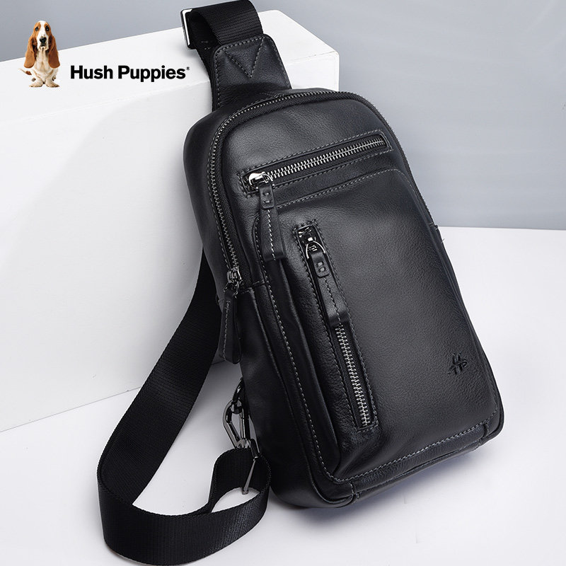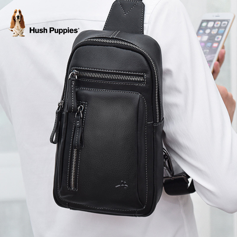 Hush Puppies men's chest bag men's bag leather messenger bag backpack casual fashion shoulder bag shoulder bag chest small bag