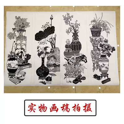 Chinese style Bogu vase paper-cut pattern printing manuscript traditional flowers and birds handmade paper carving pattern black and white photocopy