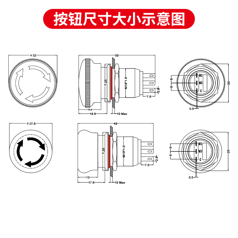 With plug-in 19MM standard (one open and one closed) with plug-in 19MM standard (two open and two closed) with plug-in 19MMSTOP word (one open and one closed) with plug-in 19MMS