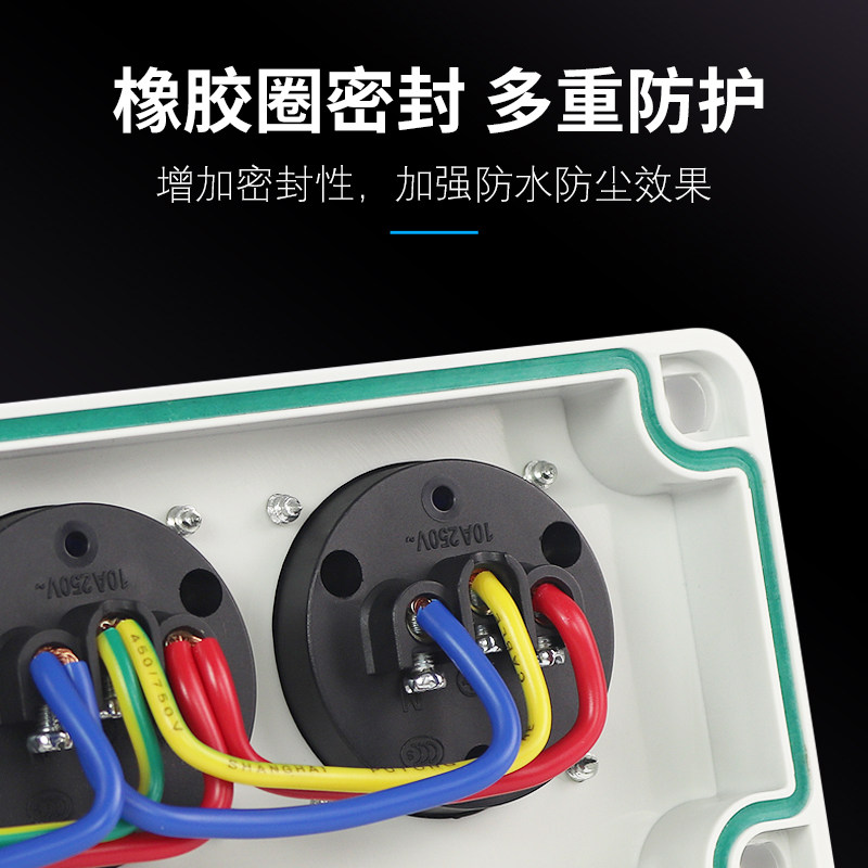 Outdoor power supply new national standard 5 five-hole 10A220V waterproof surface mount socket box Industrial rainproof concealed socket multi-union