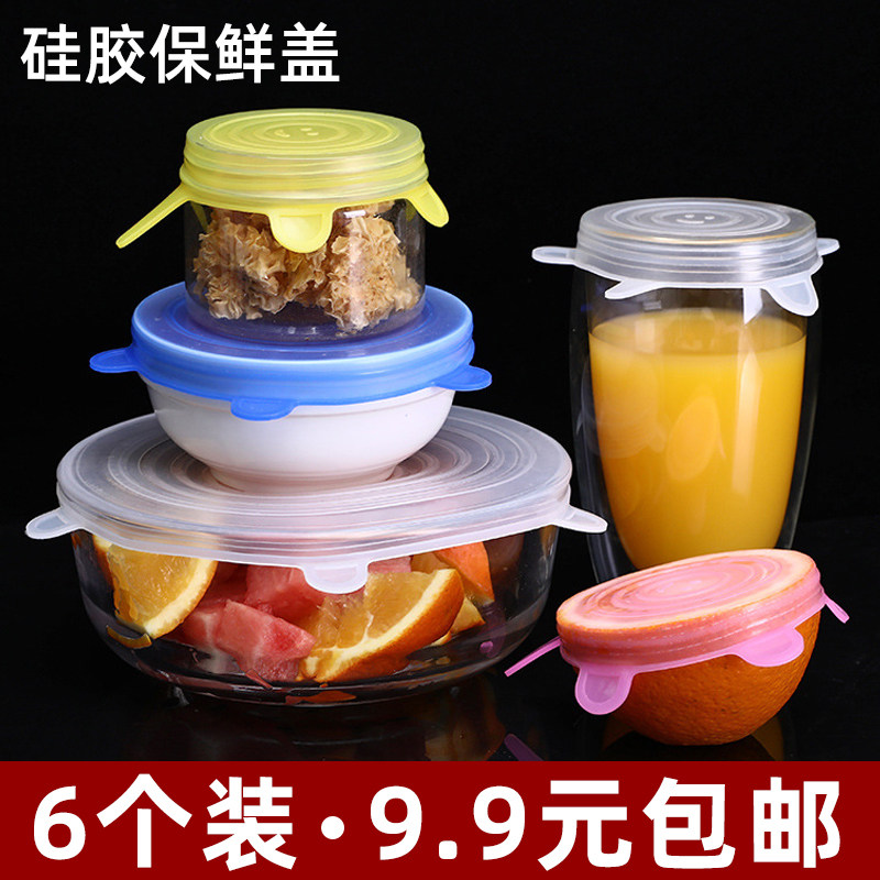 6 food grade silicone stretchable fresh-keeping cover bowl cover sealing cover film universal fresh-keeping household multifunctional