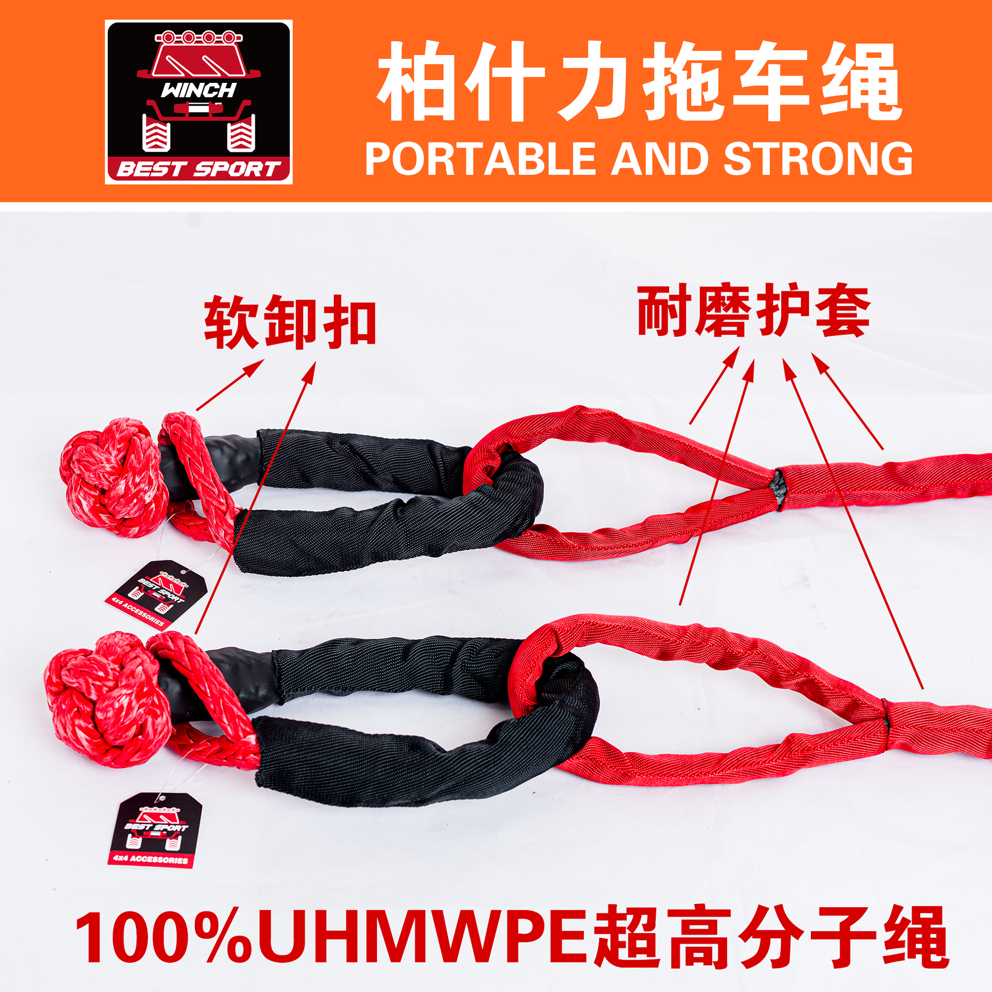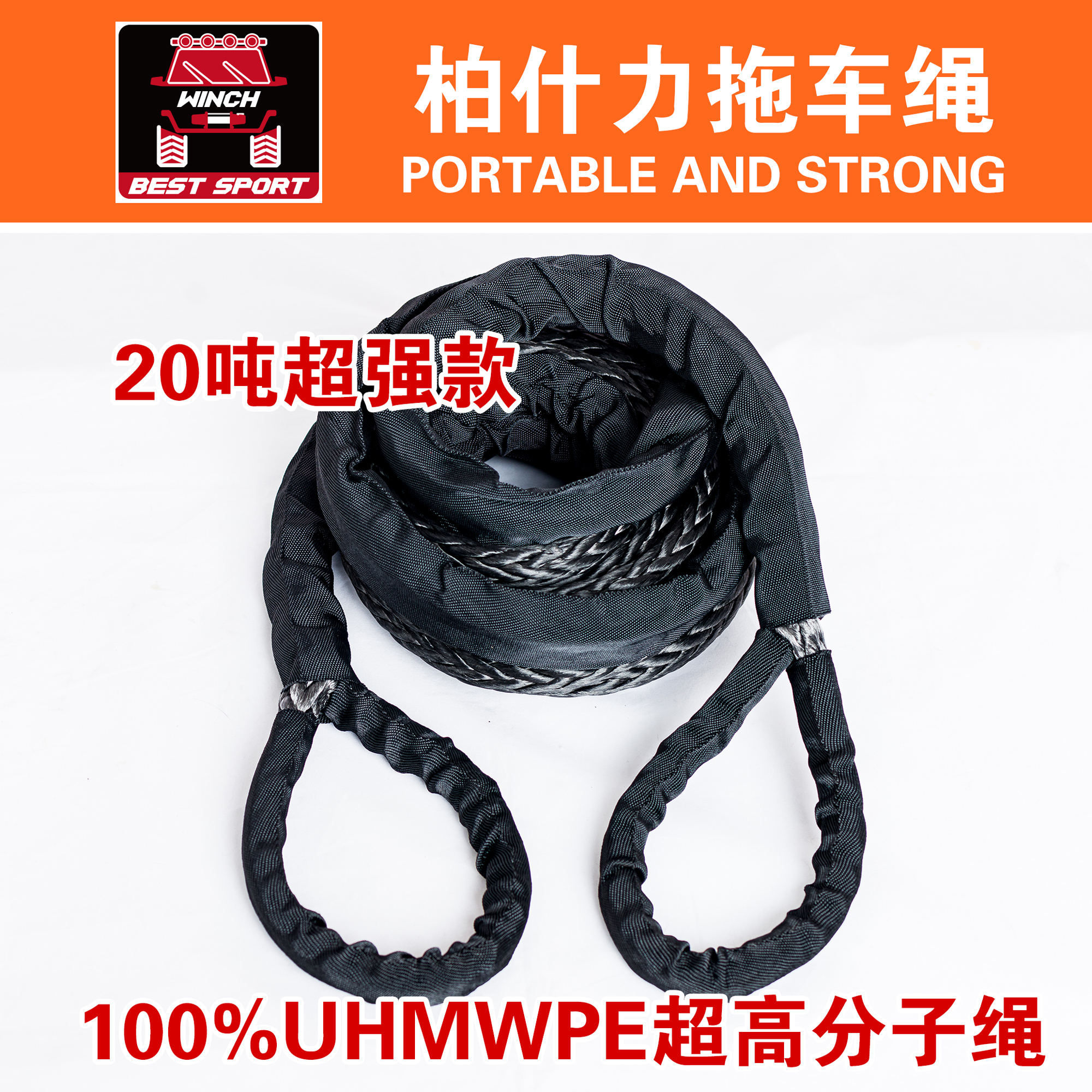15 tons off-road agricultural car trap car detracted traction rescue super polymer fiber trailer rope winch extension rope