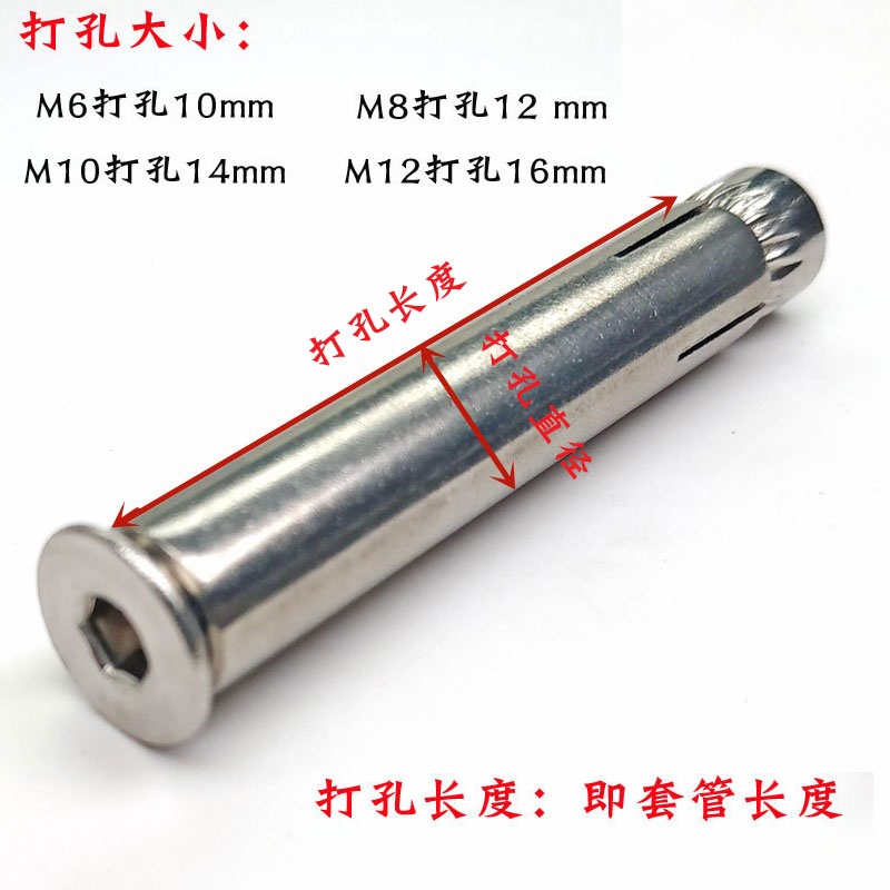 304 201 stainless steel built-in expansion bolt in hexagonal screw sunk bolt pull 12m6m8m10