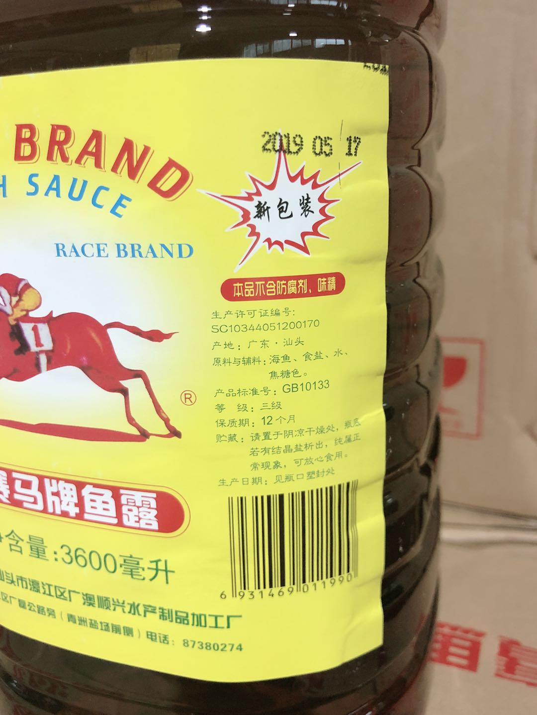A bottle of high quality Shantou fish sauce Racing horse brand fish sauce 3600ml seasoning grain oil seasoning oil steamed fish soy sauce