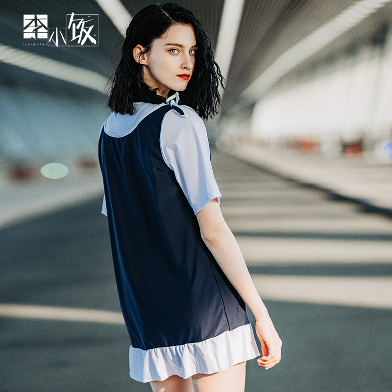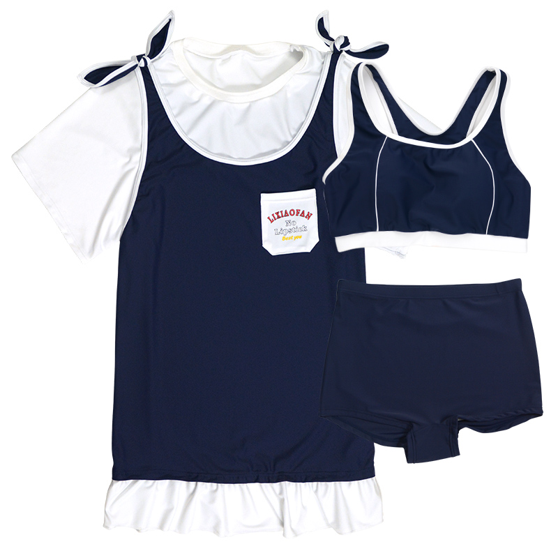 Cute woman Li Xiaofan thin belly cover short-sleeved swimsuit ins wind conservative three-piece student girl swimsuit
