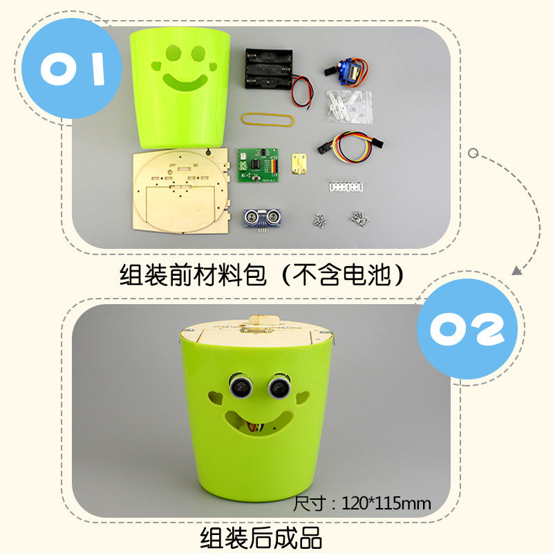 Primary and middle school students STEM environmental protection technology small making smart trash can ultrasonic sensor Children's science toys