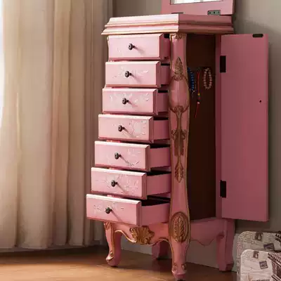 American jewelry storage cabinet floor-to-ceiling large-capacity solid wood retro European-style bucket cabinet makeup table one-piece small apartment