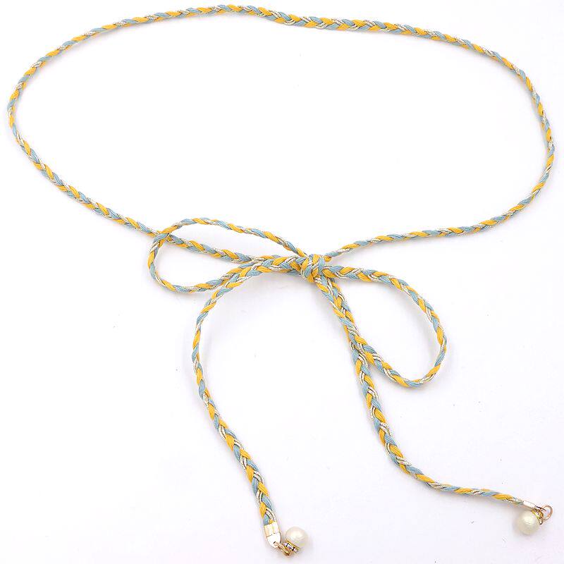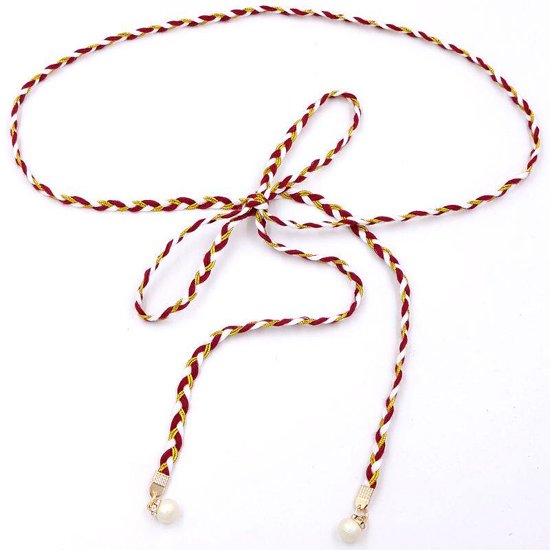 Art Fan Woven Belt Woman Fine Decoration Accessories Dress Cotton Rope Sub Knotted Waist Rope Pearl Waist Chain Foreign Dress Accessories