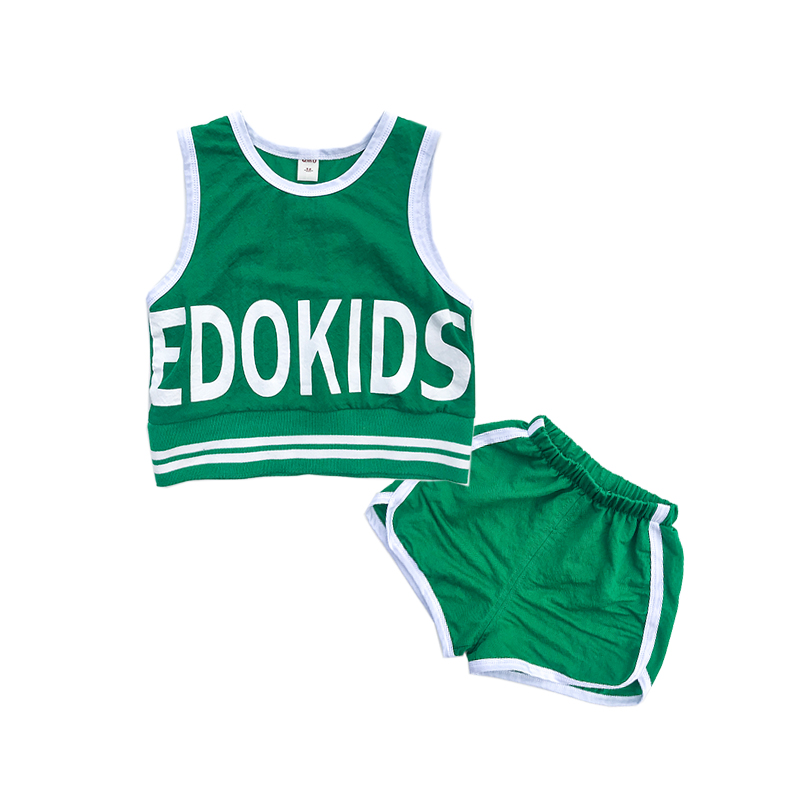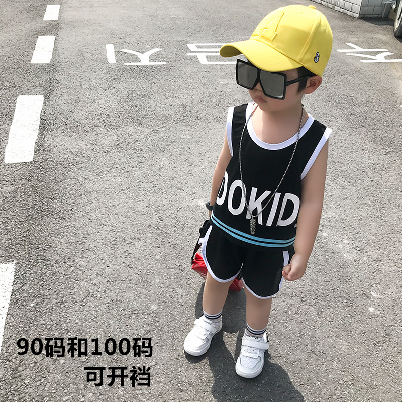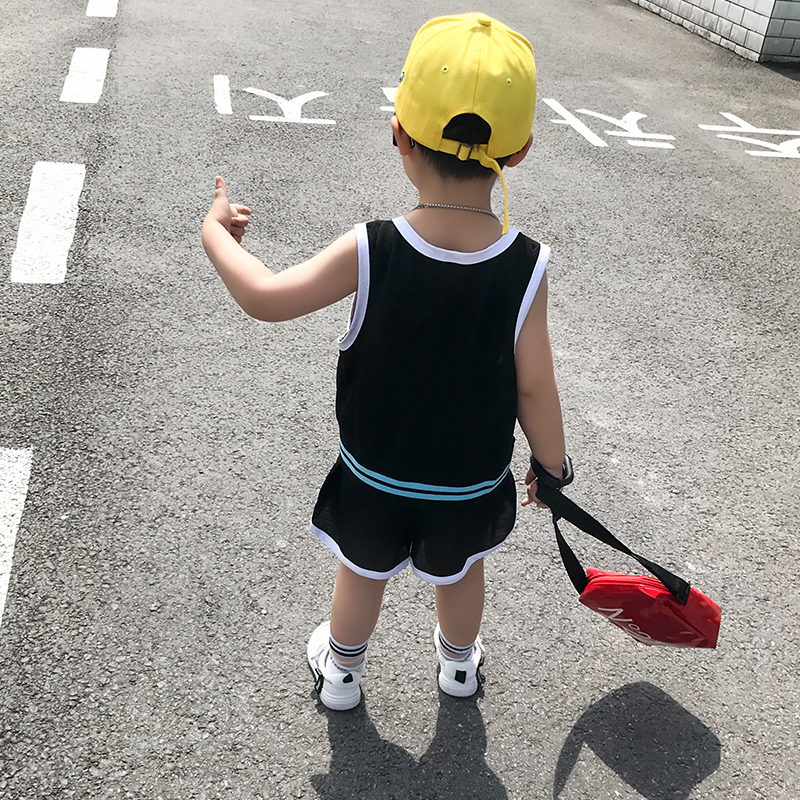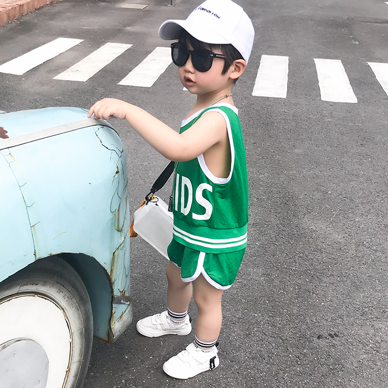 Children's ice silk cotton vest suit summer thin fashion boy sleeveless sports two-piece suit baby Western style children's clothing