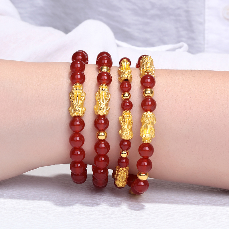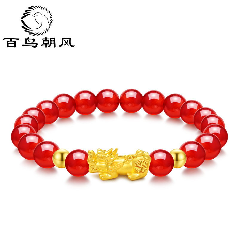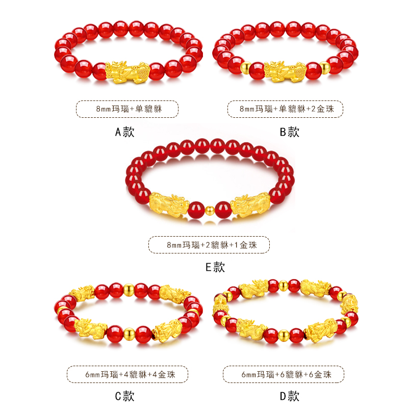 Gold Pixiu Hand Foot Gold 999 Life Year 3D Hard Gold Pichu Transfer Beads Couple Handstring Jewelry Women's