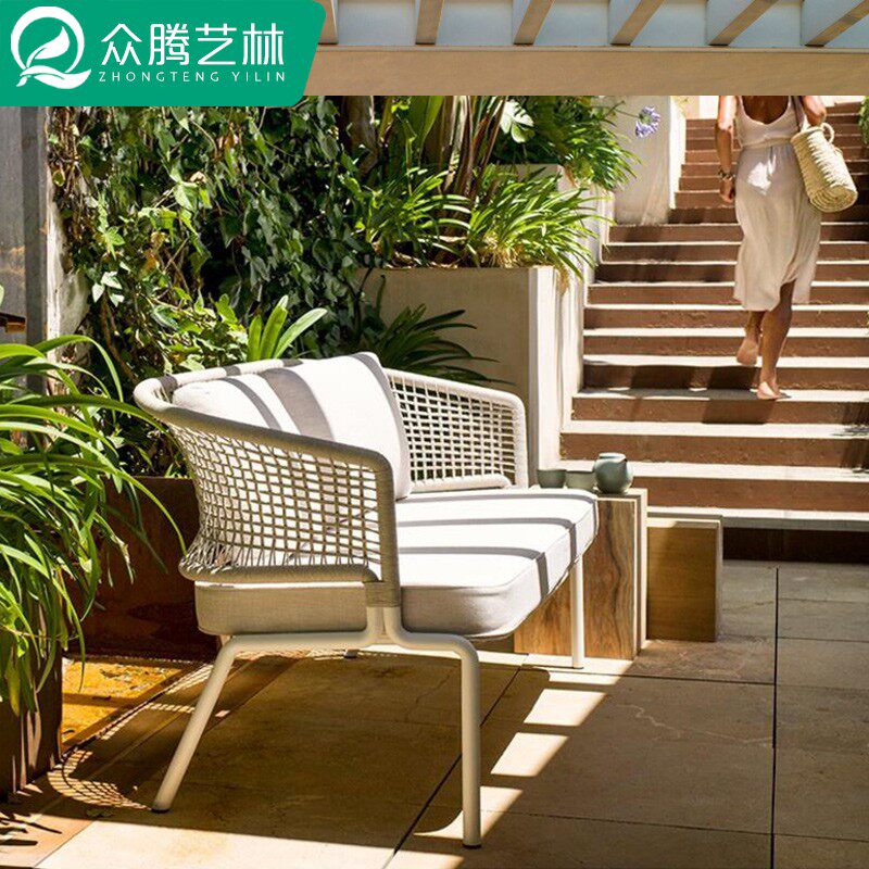 Outdoor sofa courtyard villa leisure coffee table combination outdoor garden hotel open-air rattan single rattan chair furniture