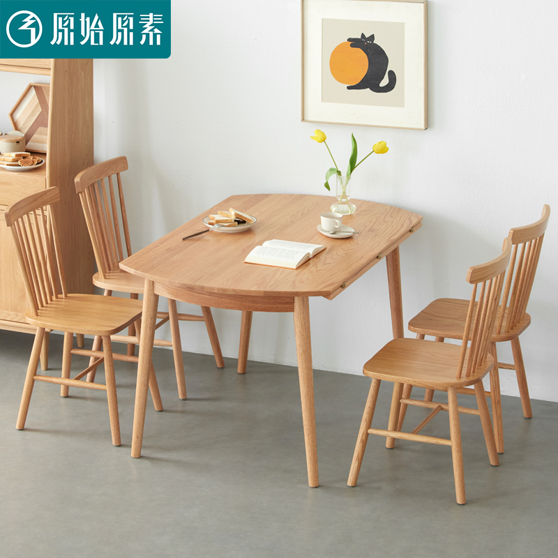 Original original vegetarian all-pure solid wood dining table and chairs combined Nordic Day dining room Dining Table Oak telescopic folding round table