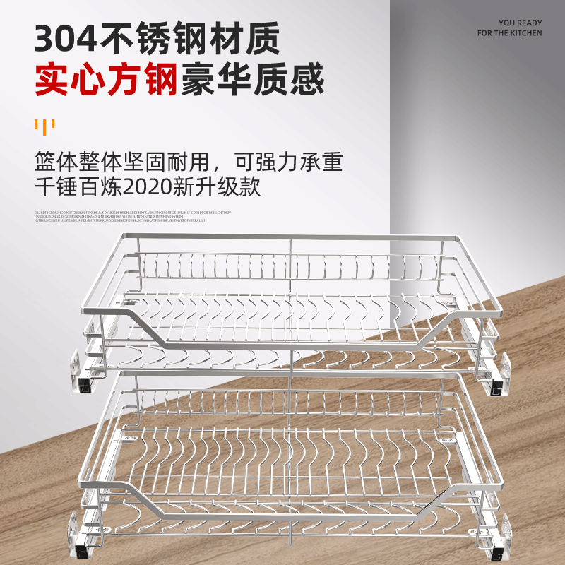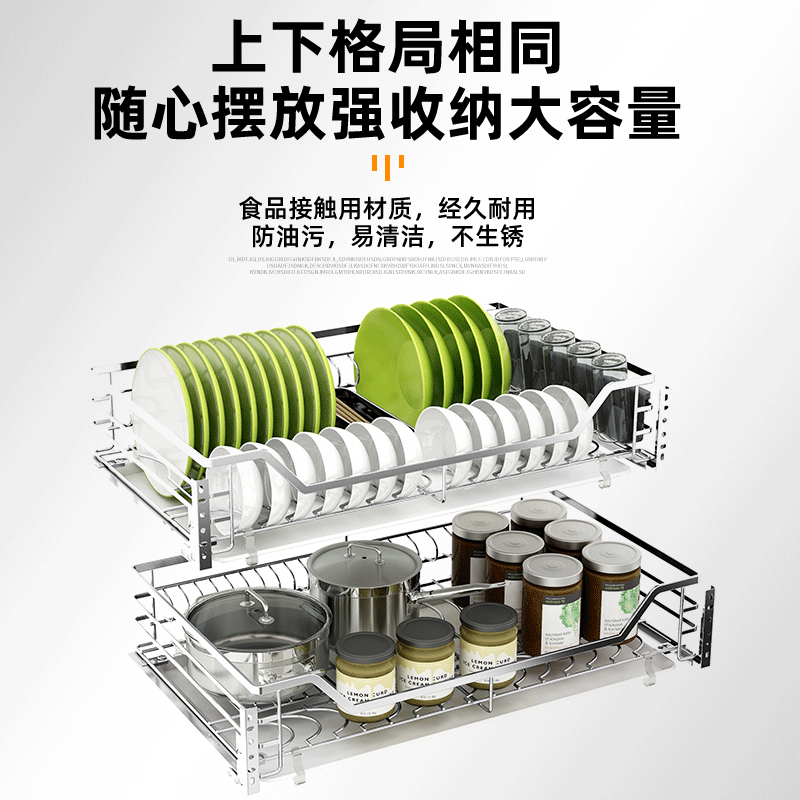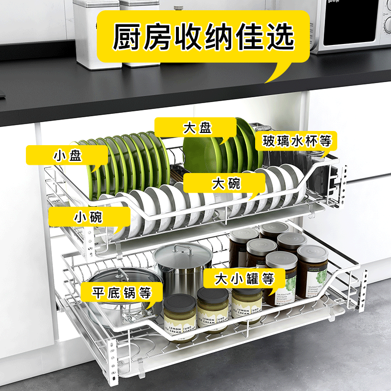 100 million Litres OVERALL CABINET PULL BASKET 304 STAINLESS STEEL KITCHEN BOWLS BASKET DISH BASKET DRAWER DOUBLE LAYER CUSHION DAMPING TRACK
