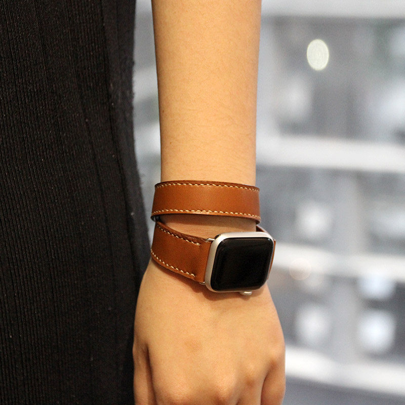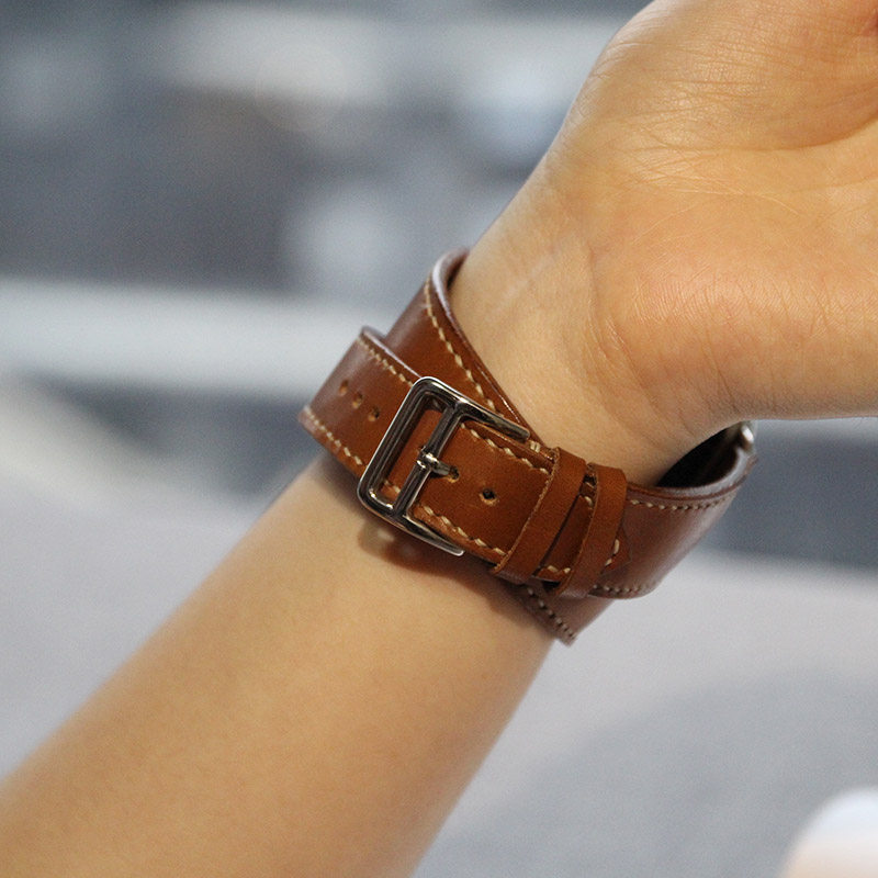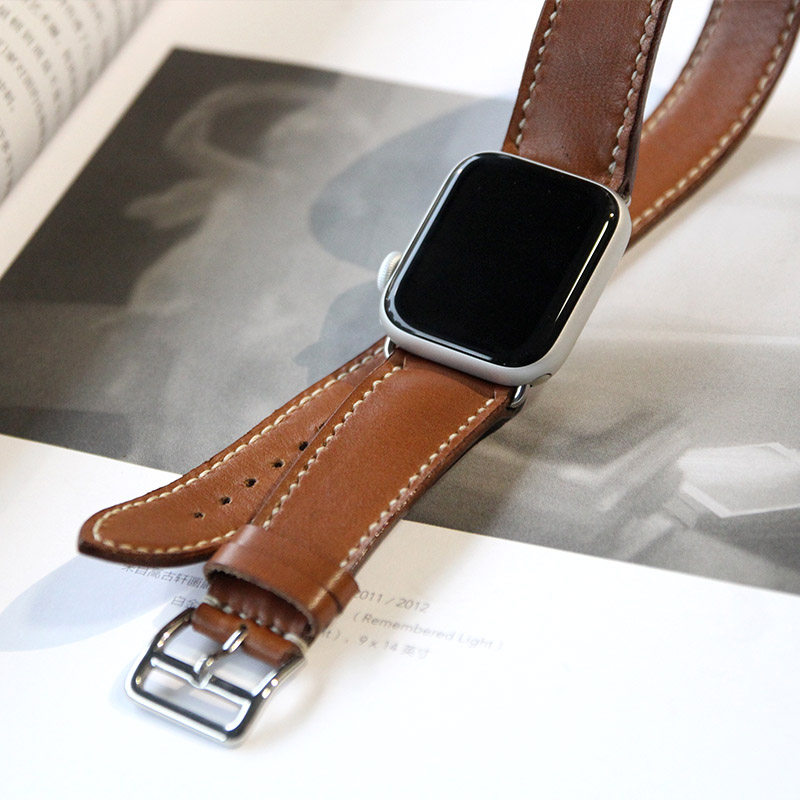 Slow-work manual Apple Watch with H family double lap meters with genuine leather retro-implanted tanning head layer of cow leather