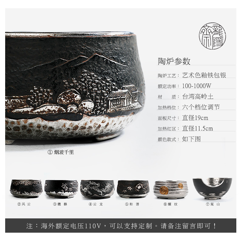 Iron-clad silver, smoke and waves, iron-clad silver, wind and cloud, iron-clad silver· Harmony Iron Bag Silver Dragon Iron Bag Silver Cloud Dragon Iron Pack Silver Thread Electric Pottery Furnace (Style Optional) + Clay Pot Electric Ceramic Furnace (Style Optional) + Stainless Steel Pot Electric Ceramic Furnace (Style Optional) + LongshanTang Qinhe Plum Blossom Iron Kettle