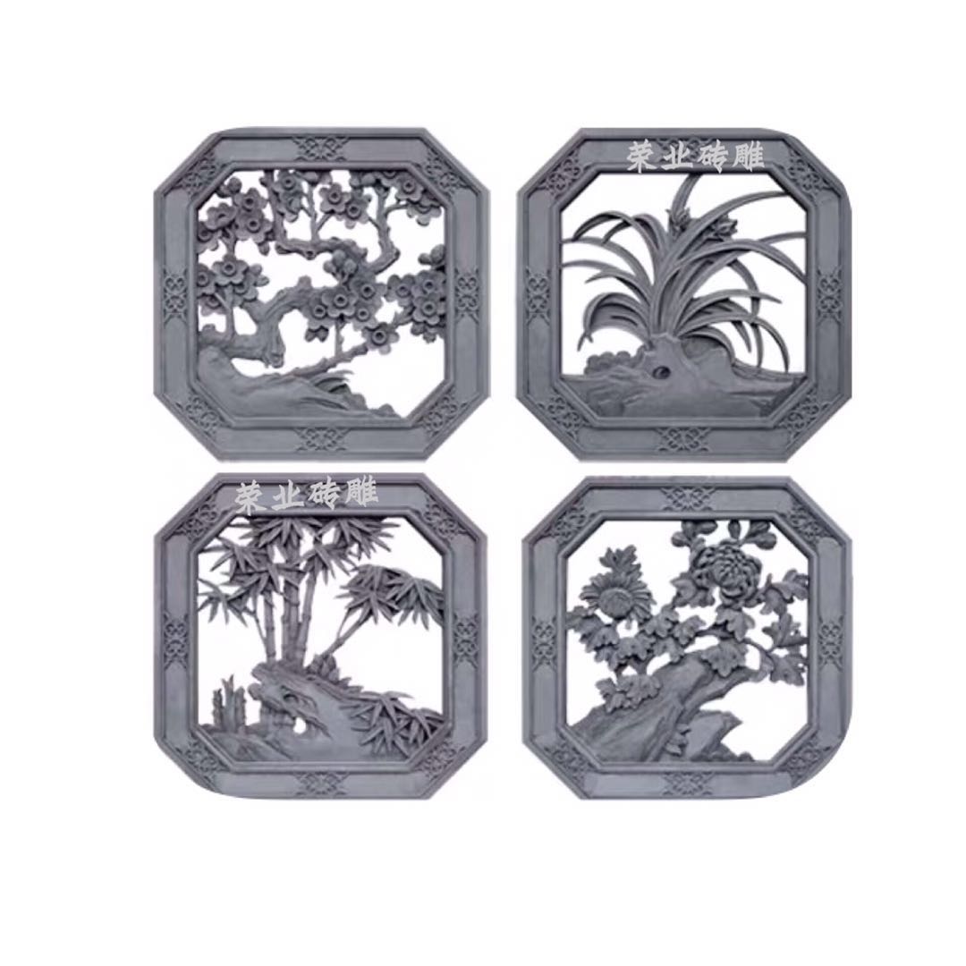 Antique brick carved octagonal window Melan bamboo hollow brick carved cement flower and window ancient wall decoration