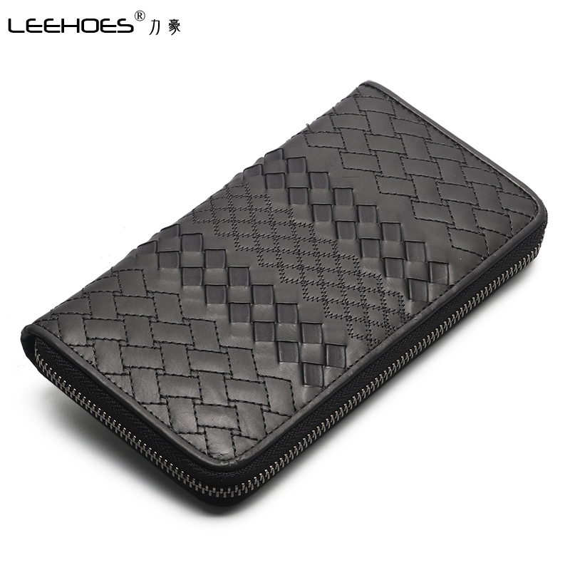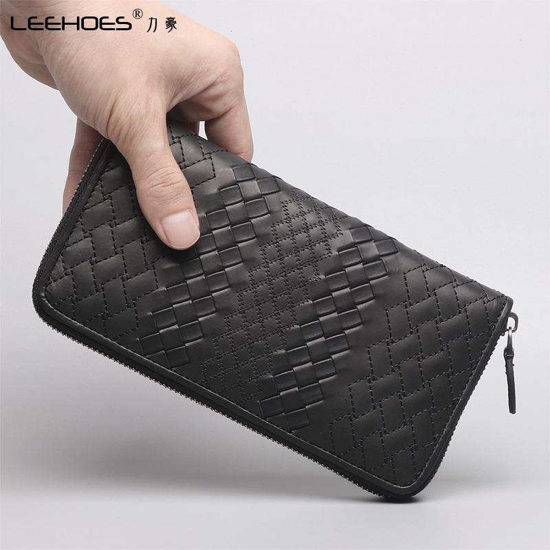 2021 new pull-chain wallet man genuine leather small handbag casual woven hand with Baotou layer Bull Leather Soft Leather Tide Man