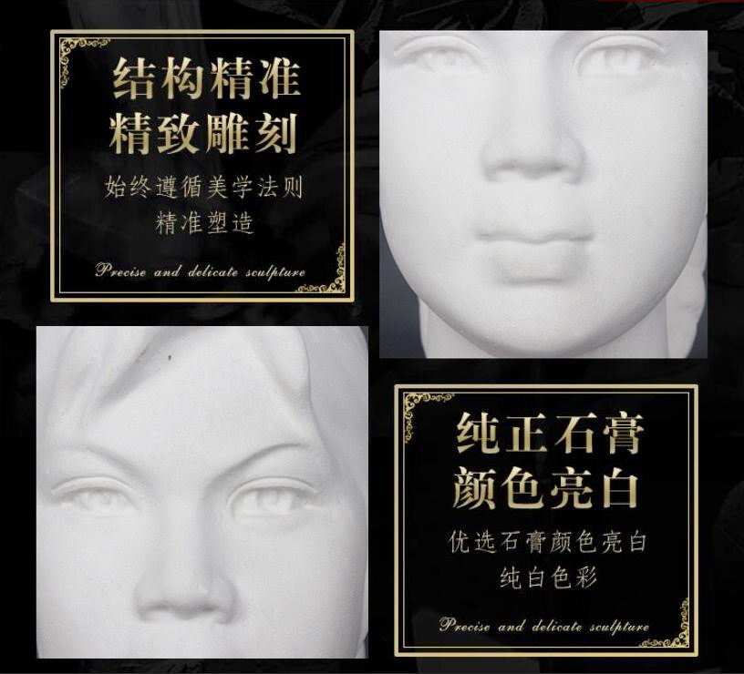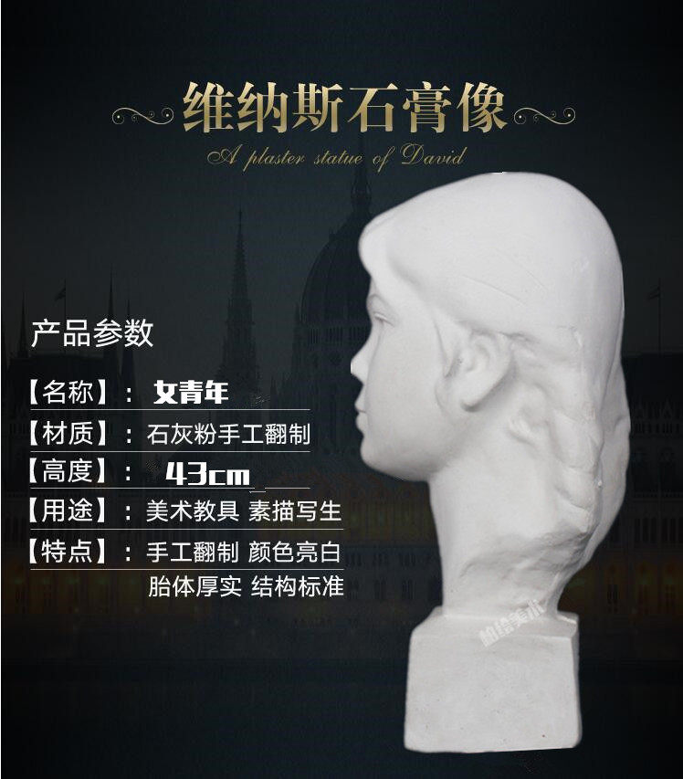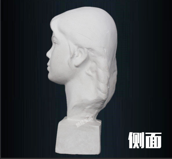 Female child plaster like sketching sculptural small plaster like a fine art room assorted equipment to write a Nordic female youth avatar