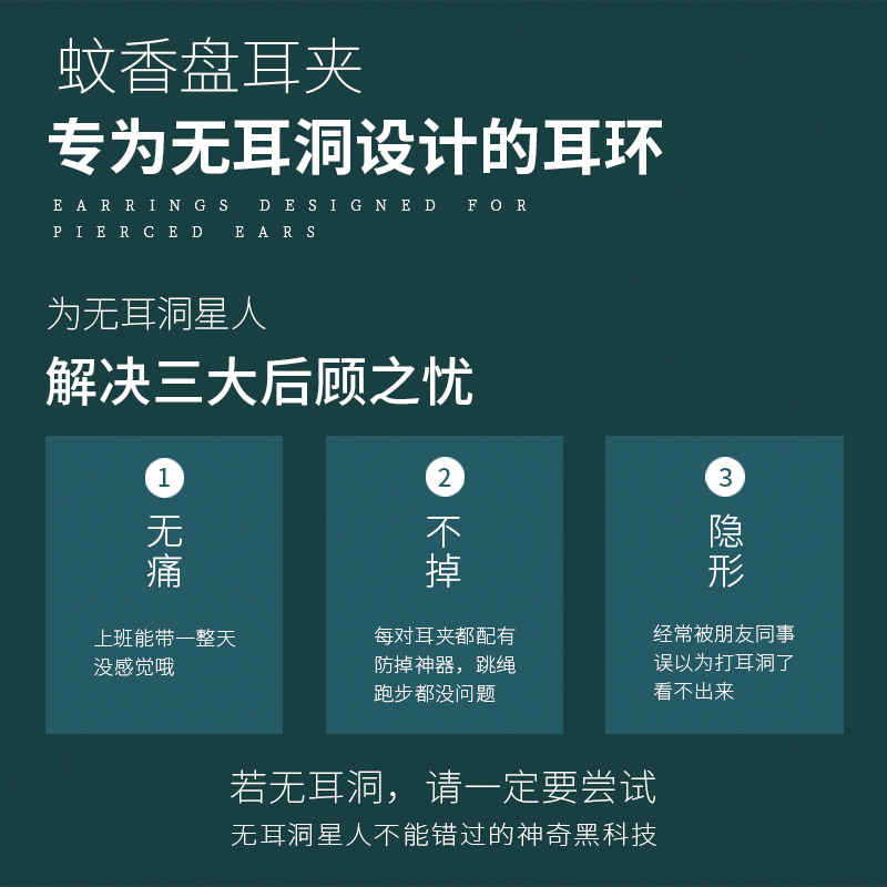 A pair of ear studs A pair of mosquito coil ear clips A pair of novice no pierced ear reference wearing method No pierced ear remarks earlobe size code