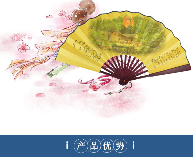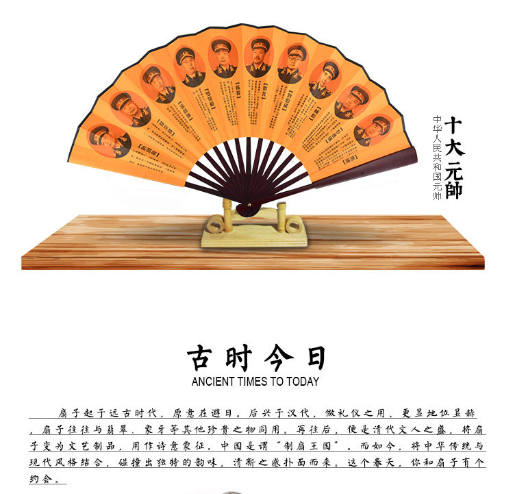 Bamboo handcraftsmanship Chairman Mao poetry folding fan retro craft gifts decoration Chairman Mao's Top Ten Marshals figure 10 inch folding fan