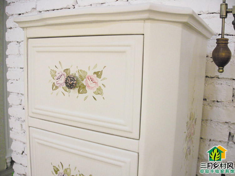 English style Inn style solid wood American field Garden style hand-painted Tiger legs Four-bucket cabinet March Country wind