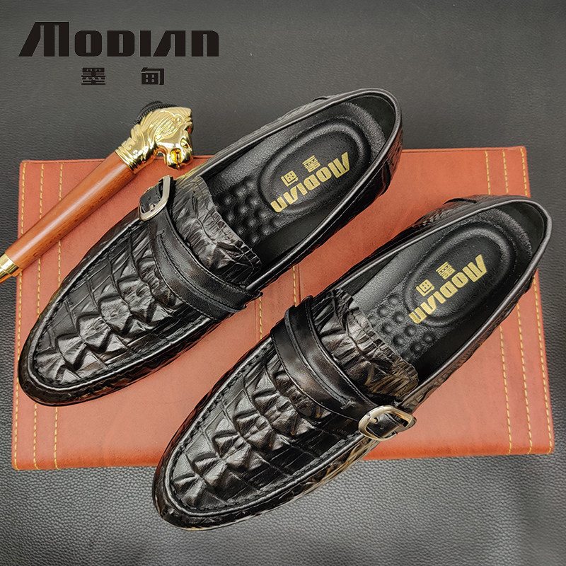 Crocodile pattern men's shoes business casual leather shoes sailing shoes leather pointed toe summer beanie shoes tide shoes driving shoes men