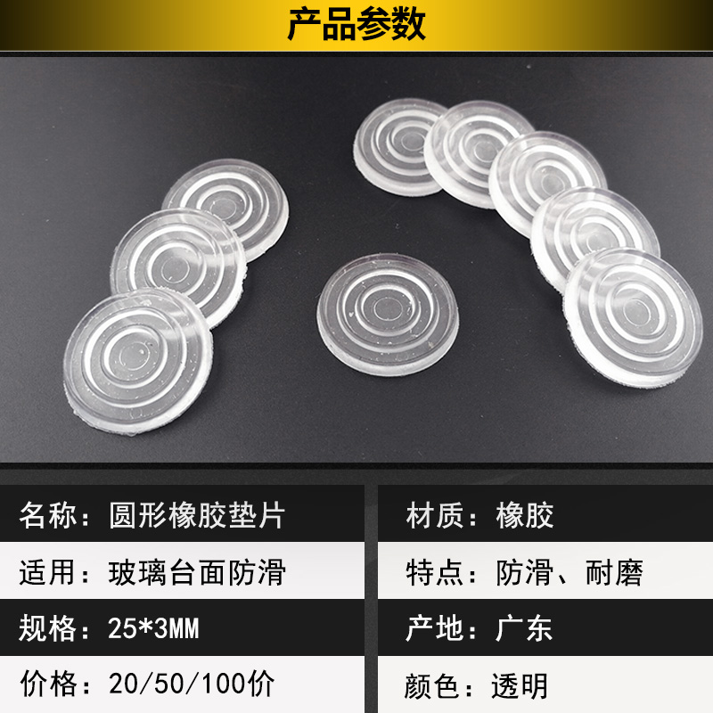Flat glass rubber round spacer red wood tea table tempered glass table surface upholstered fixed non-slip silicone suction cup
