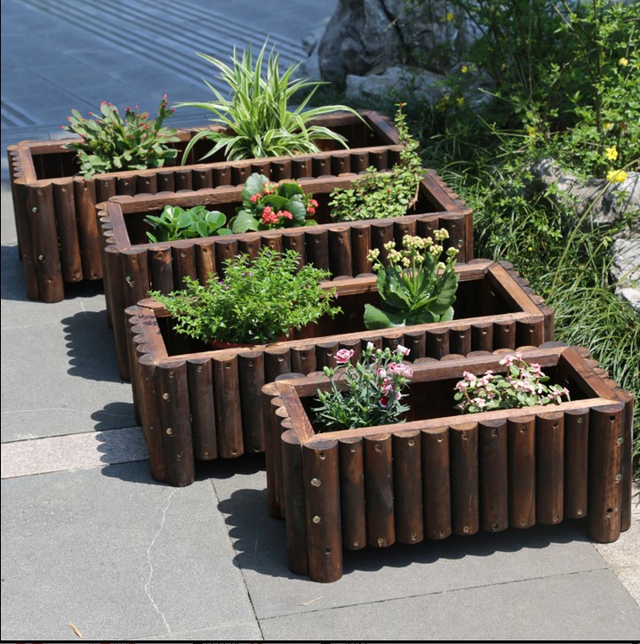 Carbonized wood flower pot outdoor anti-corrosion wood flower box rectangular balcony vegetable pot wooden flower trough garden flower pot large