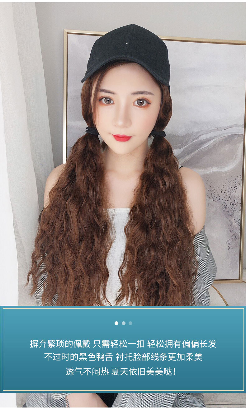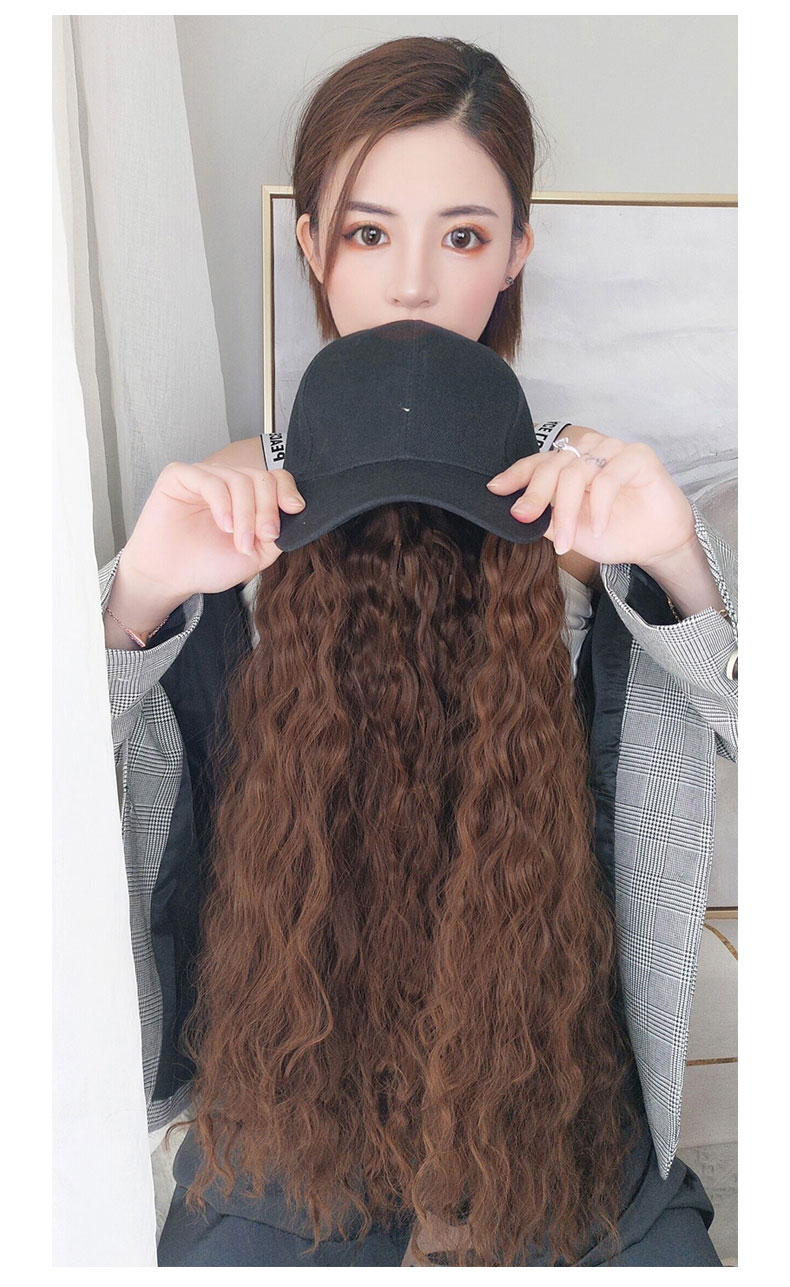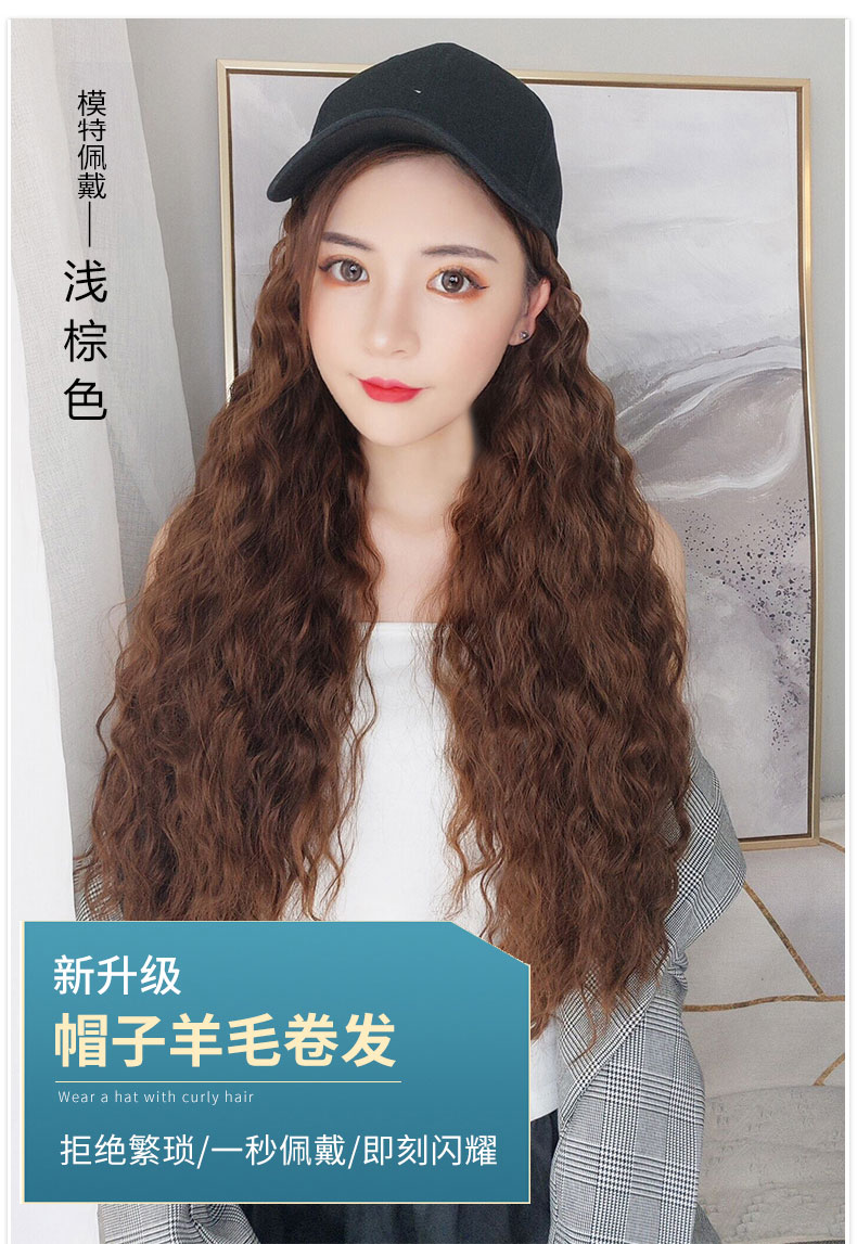 Wig hat female long curly hair corn natural net red instant noodles Wool one-piece spring and summer fashion full head new style wig