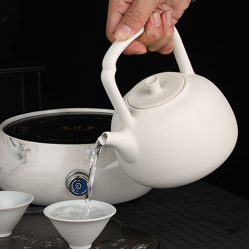 Large Capacity Ceramic Boiling Kettle Home Cooking Kettle White Clay Pottery Pot Boiling Tea Instrumental Tiliang Pot Black Crystal Stove Tea Set Group