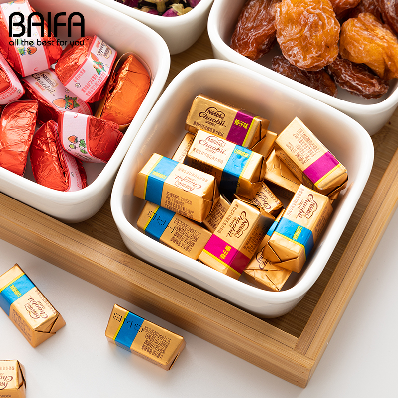 Creative modern living room coffee table Household dried fruit snack storage box Creative ceramic bamboo and wood fruit plate platter grid plate