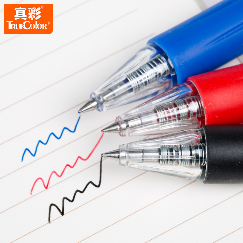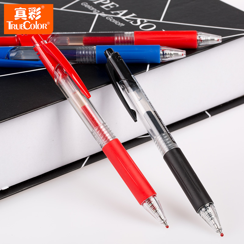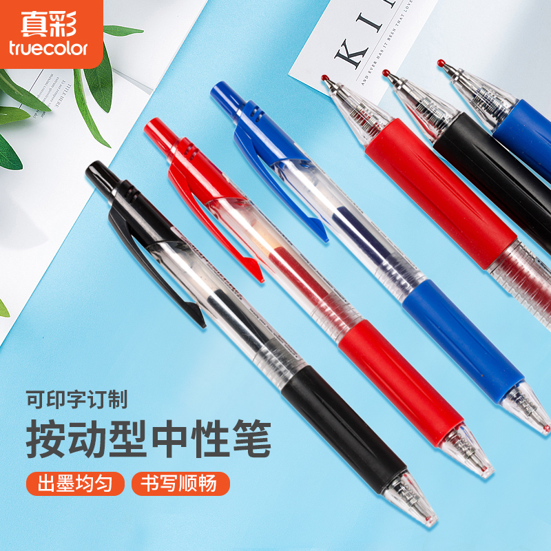 True colour 009C Sort by motion Pen Black Red Office 0 5mm 5mm Conference Signature Pen Warhead Toggle Spring Pen 12 Wholesale student examination Signature pen with print logo-Tato-Tao