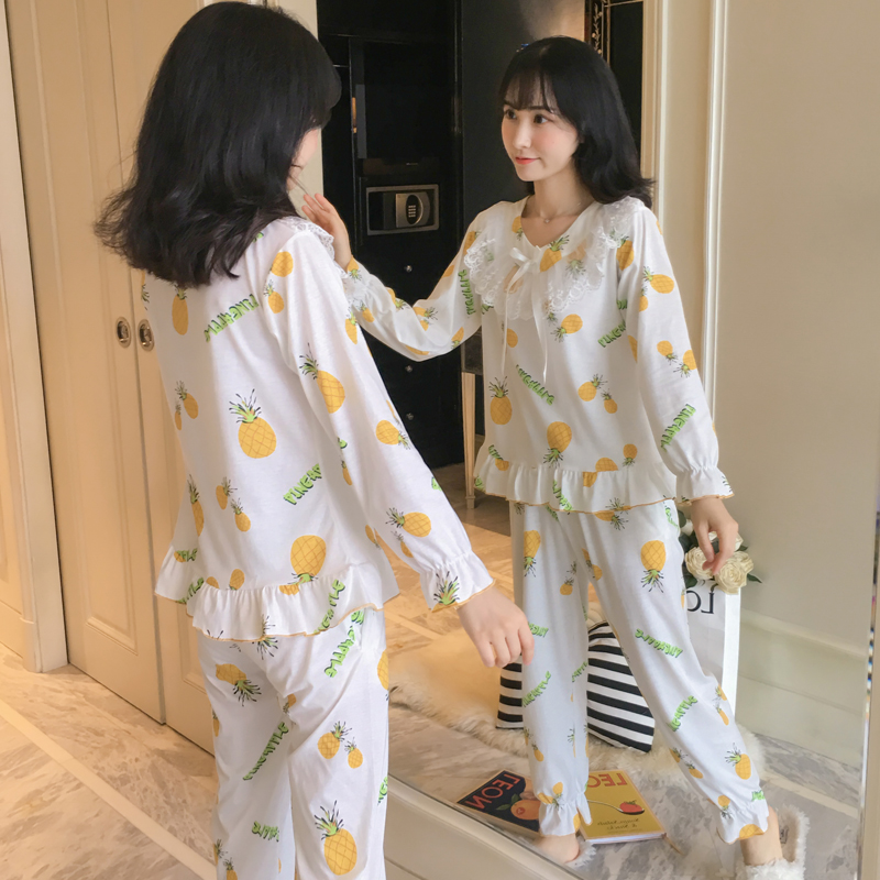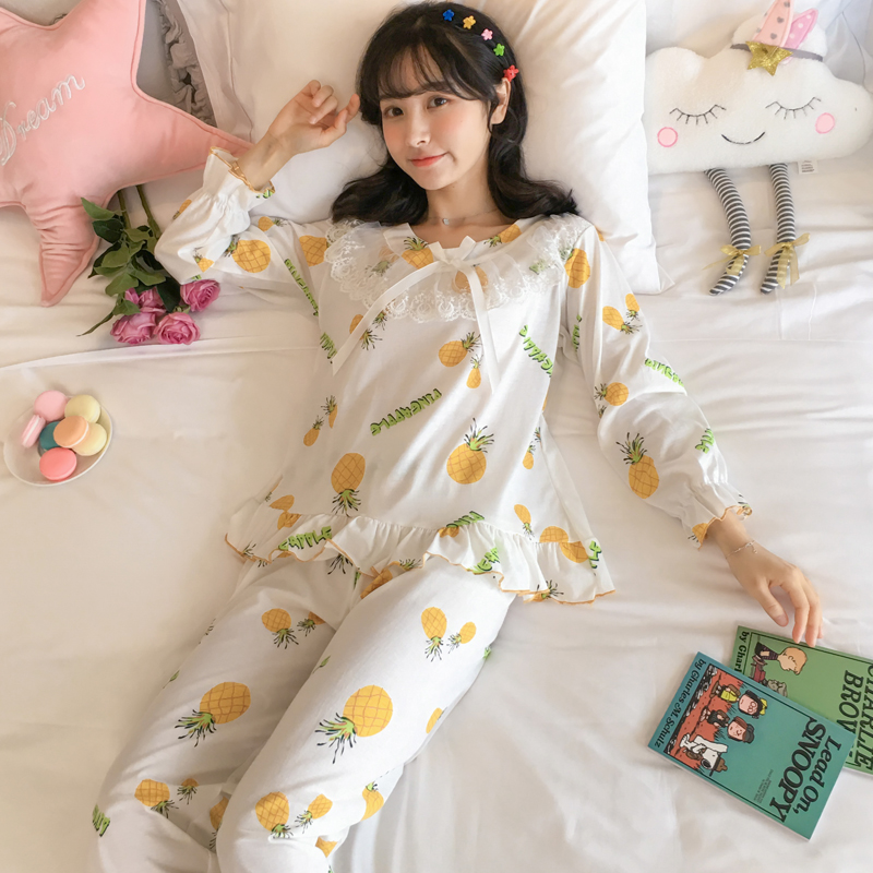 Princess style pajamas women's spring and autumn Korean version cute long-sleeved two-piece suit loose cotton thin summer home clothes
