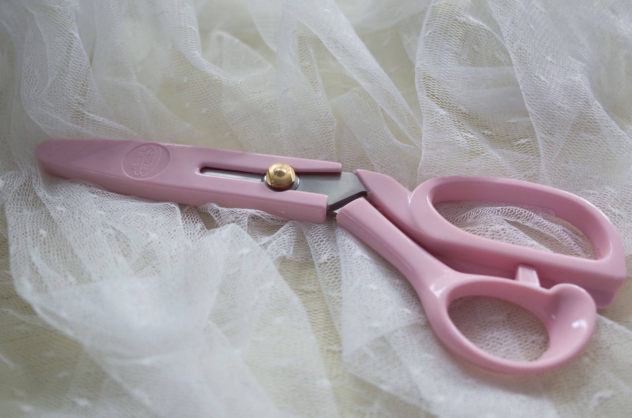 A pair of pink scissors A pair of blue scissors