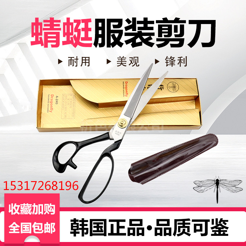Korea imported dragonfly brand line Chun as tailor scissors high-grade clothing leather scissors A220 tailor scissors cutting cloth special scissors home tailoring cloth handicraft industry size paper cutting scissors