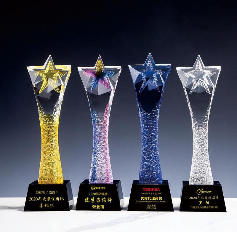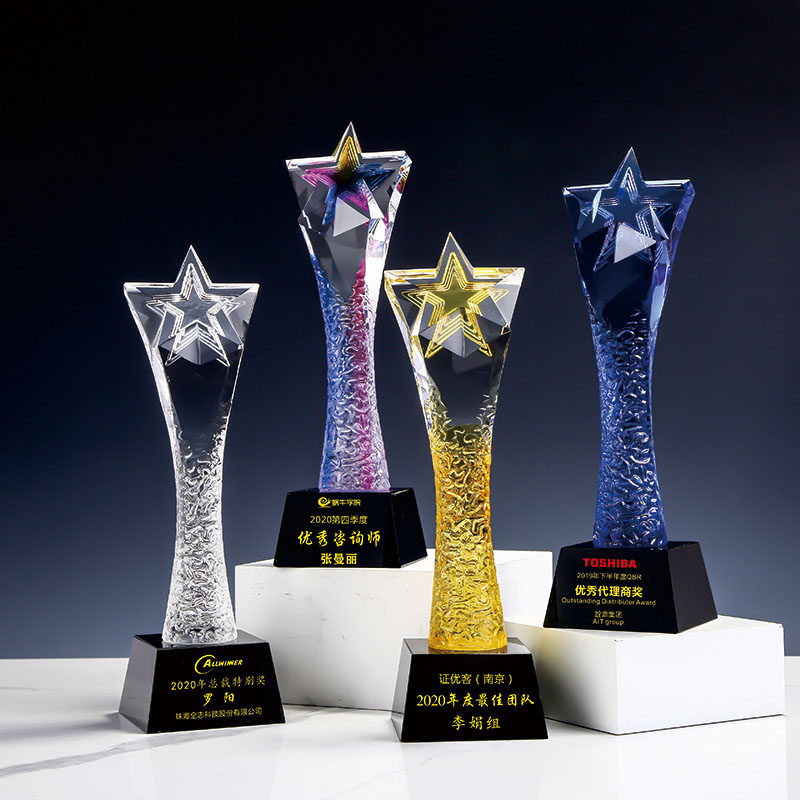 Glass crystal trophy color twist column trophy gift custom excellent employee lettering commemorative award competition custom