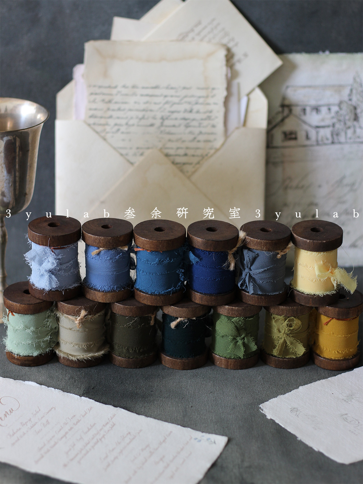 1 Almond wood spool One 2 Aquamarine wood spool One 3 Blossoms wood spool One 4 Candy Pink