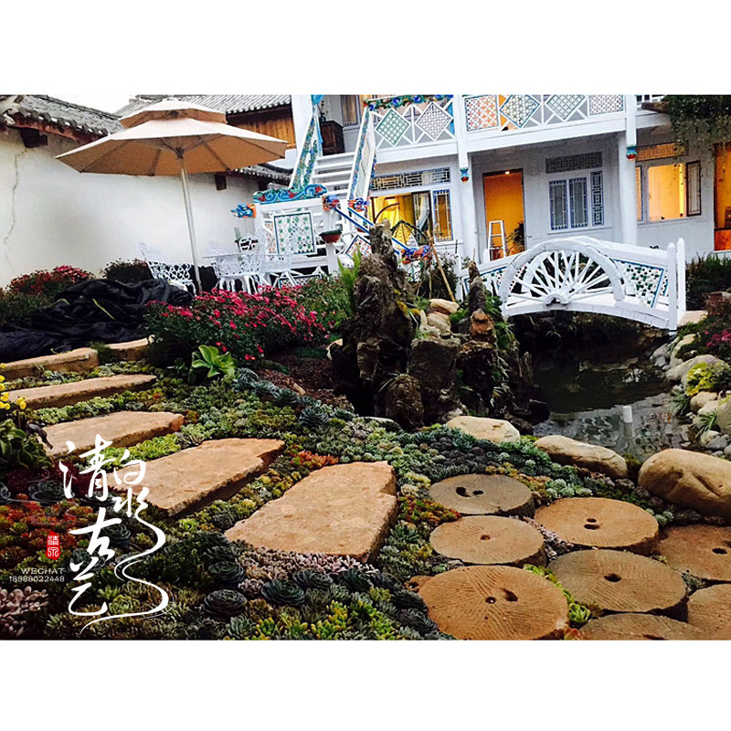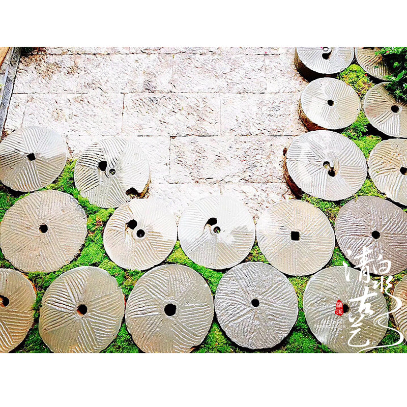 Qingquan ancient art round stone grinding decorative flowing water viewing ornaments courtyard stone foot pads old stone decoration