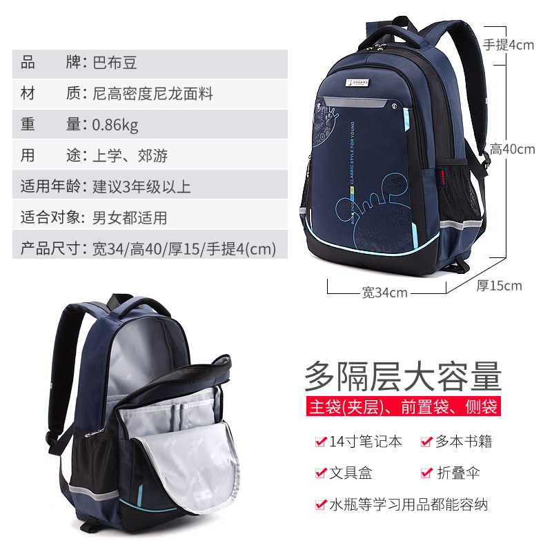 Babu Bean Child Lalever Schoolboy Schoolboy Boy 3-6 Grade Girl Boy Six Wheels Waterproof Hand Hauler Suitcase 4