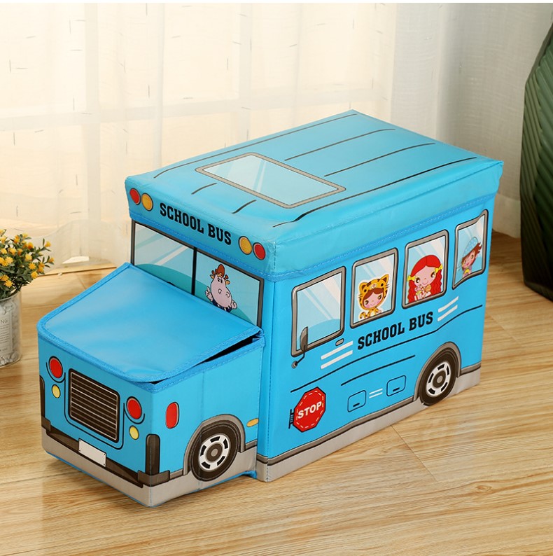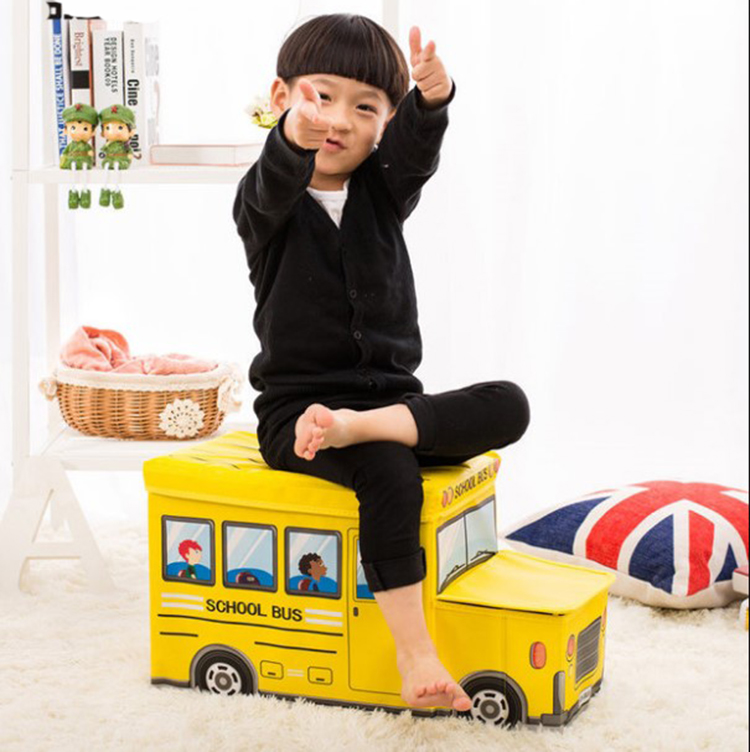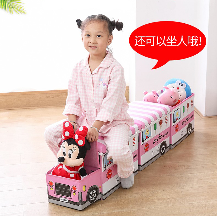 Pink car storage stool red fire truck storage stool blue car storage stool police car storage stool yellow school bus storage stool pink compartment red fire truck compartment blue compartment police car compartment school bus compartment