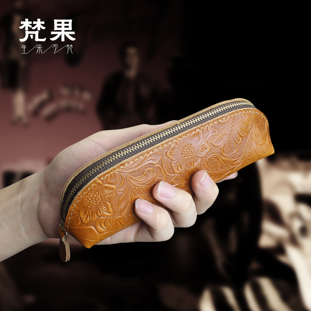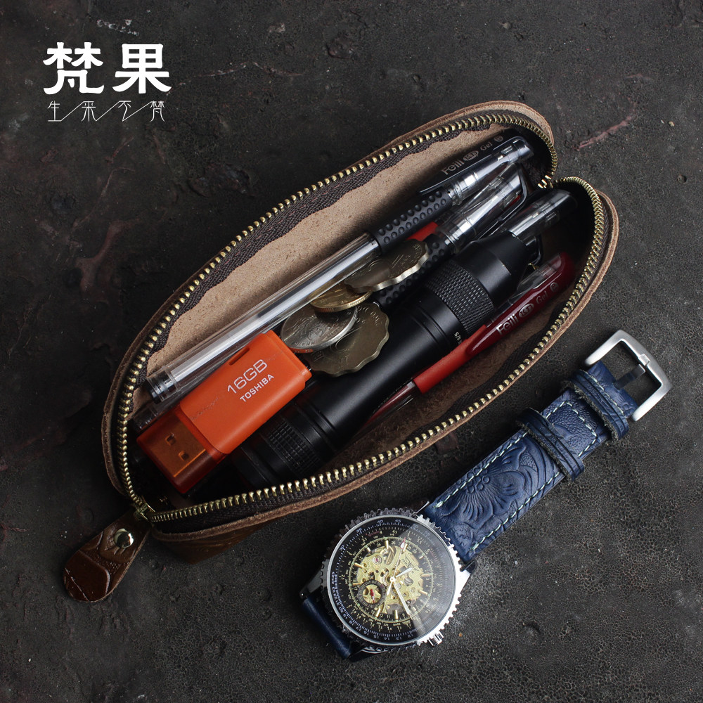 Handmade leather retro pencil bag student pencil bag large capacity pencil case stationery bag cowhide storage bag pen bag tide