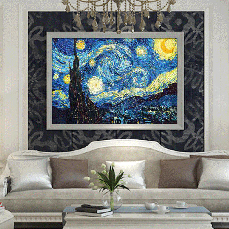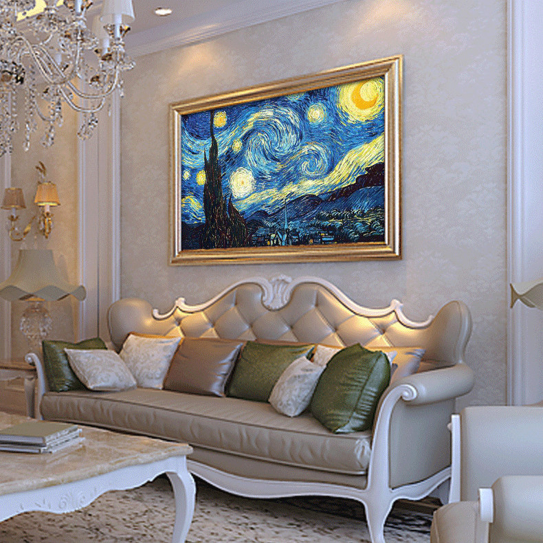 Modern living room decoration painting European style hand painted painting of porch aisle hanging painting wall hand-made Van Gogh Star impression