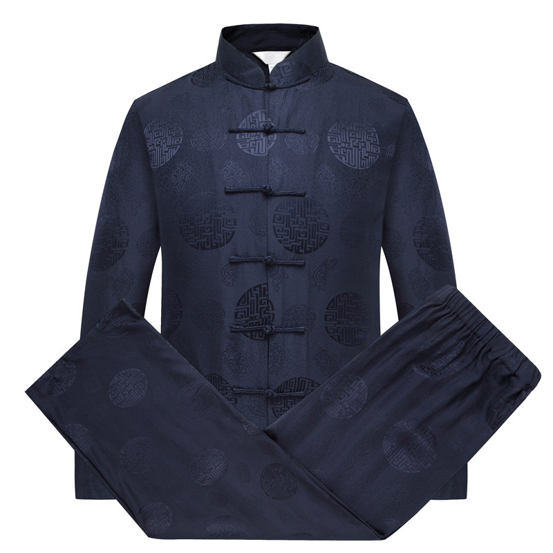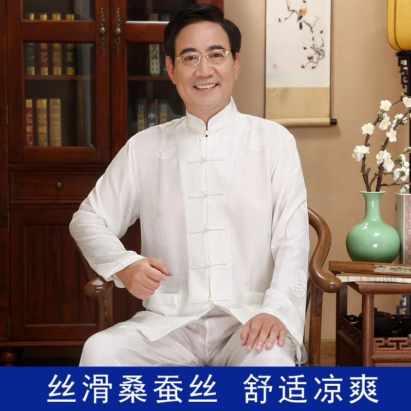 Tang suit men mulberry silk long sleeve suit Chinese style stand collar buckle silk for the elderly loose silk grandpa suit