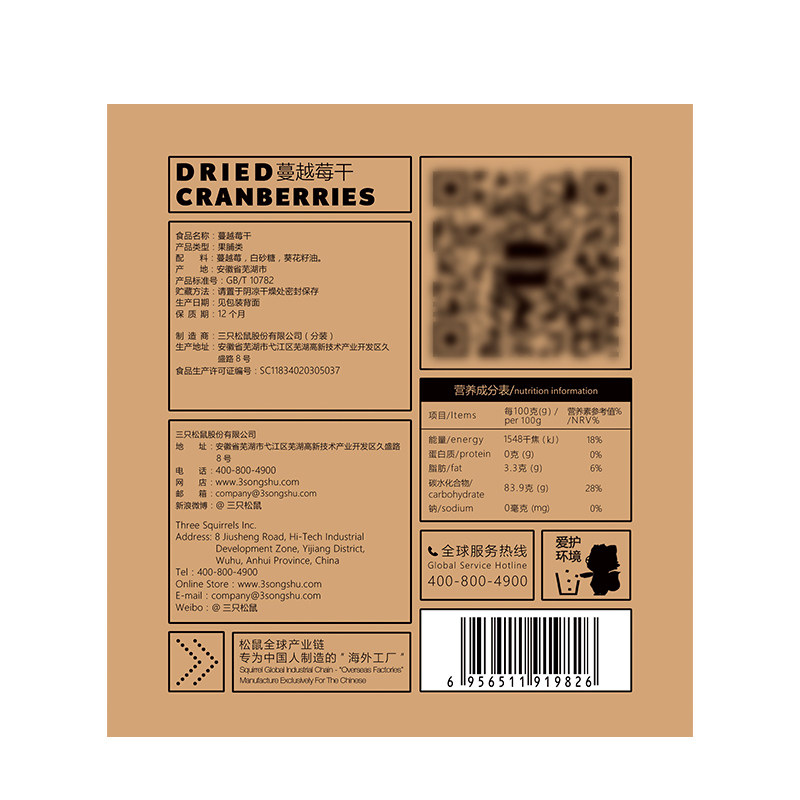 Three squirrels cranberry dry 100gx3 bag baking raw material candied fruit dried fruit praline office casual snacks