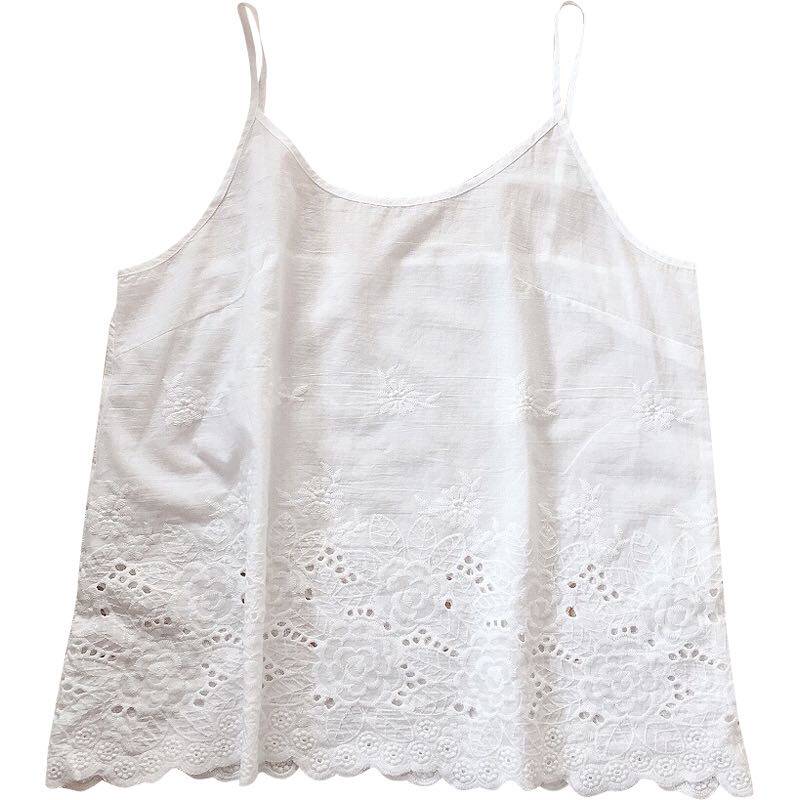 2022 South Korea East Gate Pure Cotton Hemp Hollowed-out Small Harnesses Vest White Lace Embroidered Flowers Short blouses woman