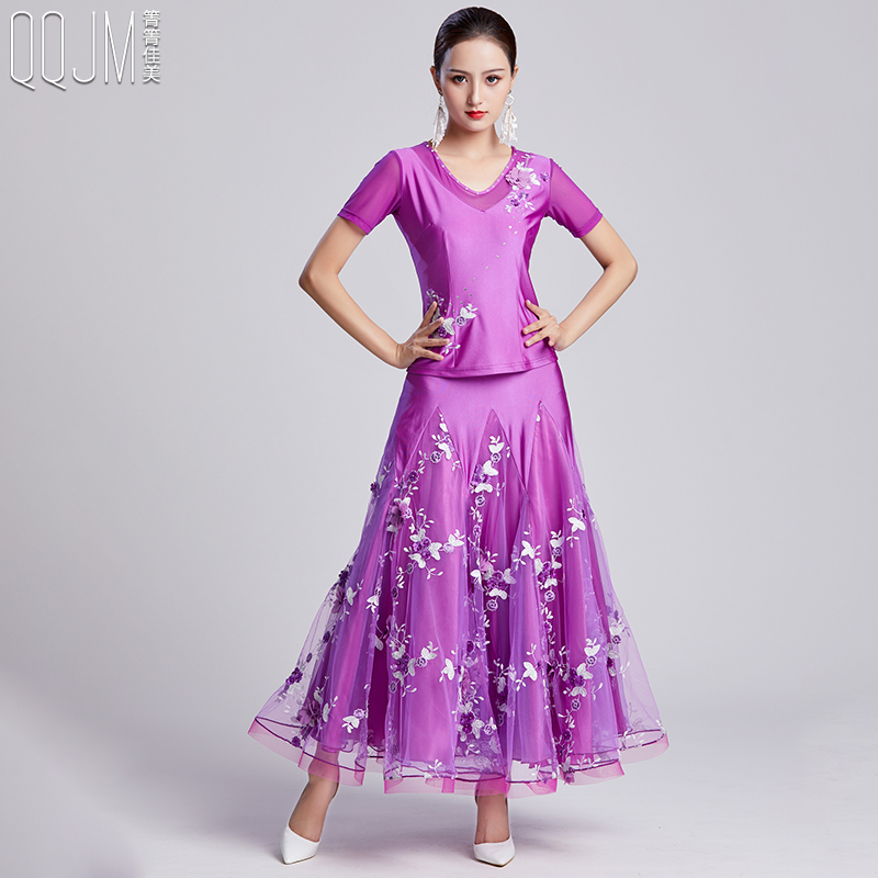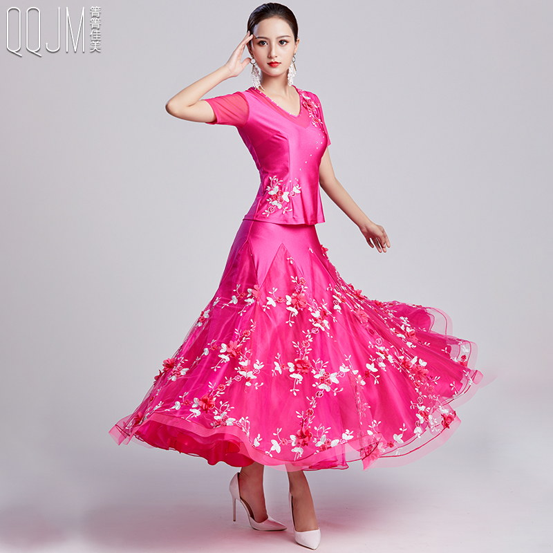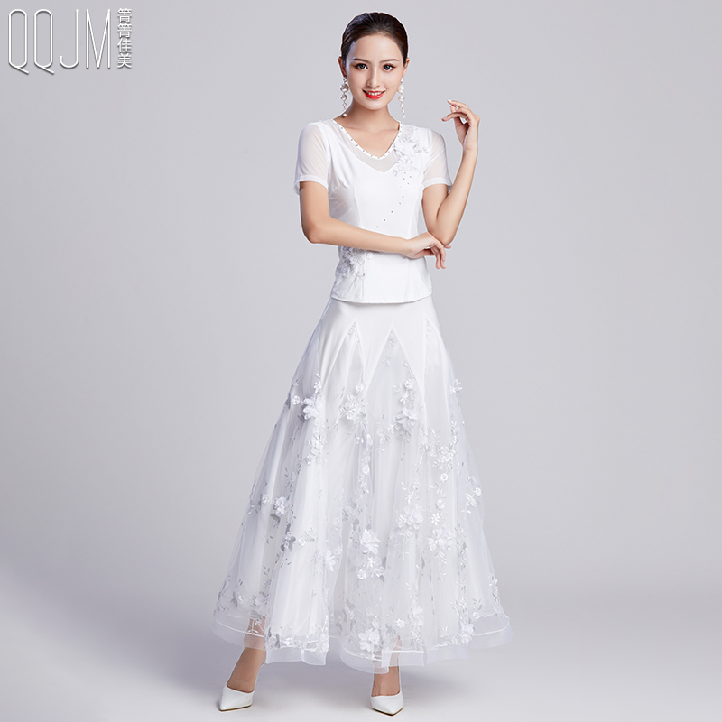 Dance Skirt Woman Half Body Dress Large Swing Long Version Sequin Adult Morden 2022 New Social Dance Square Dance Embroidered Dress