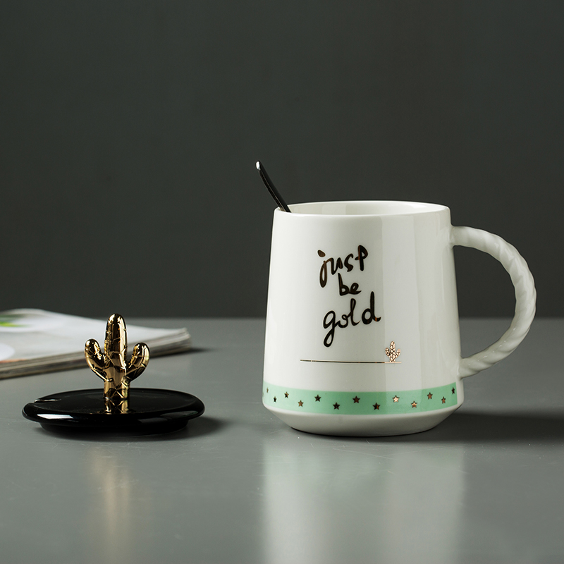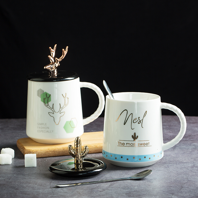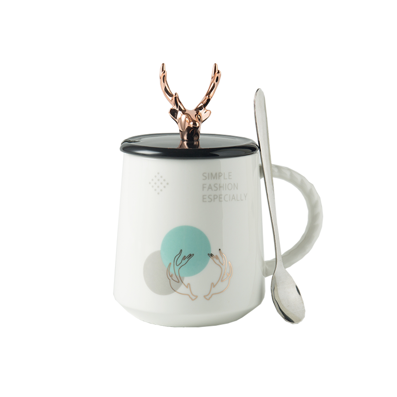ins Nordic lovers brief deer corner ceramic cup mark cup large capacity breakfast milk cup tea water cup send cover spoon