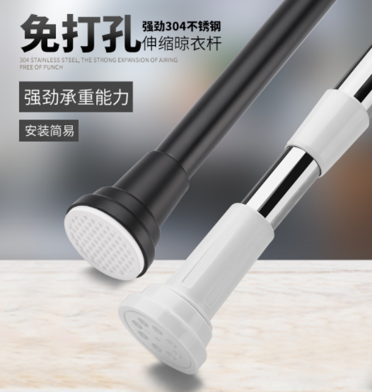 Stainless steel pipe inner round rod thickened wardrobe hanging rod hanging hole free shrinkage telescopic rack lengthened