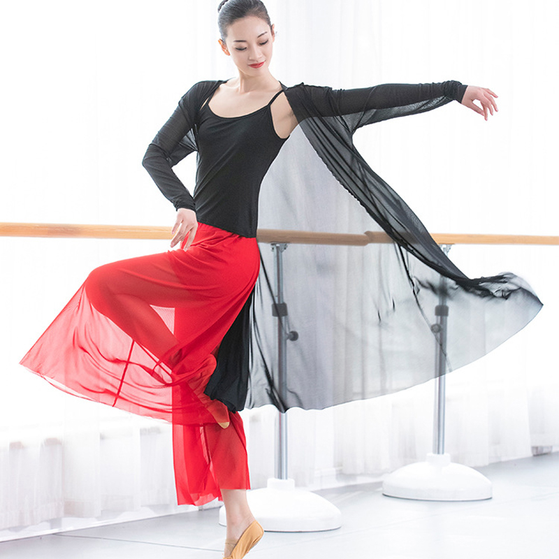 Classical dance flutter with long version of external hitch Chinese wind mesh yarn dress rehearsal for adult modern dance practice Gongfu blouses