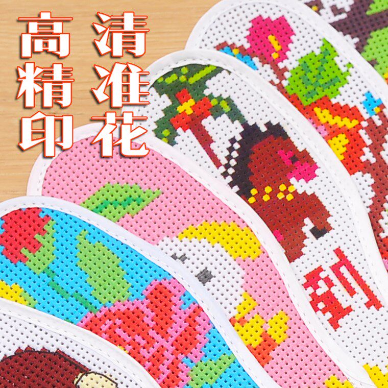 Women's cross stitch children's insole cartoon small size handmade padded female Women's embroidery embroidery pure handmade